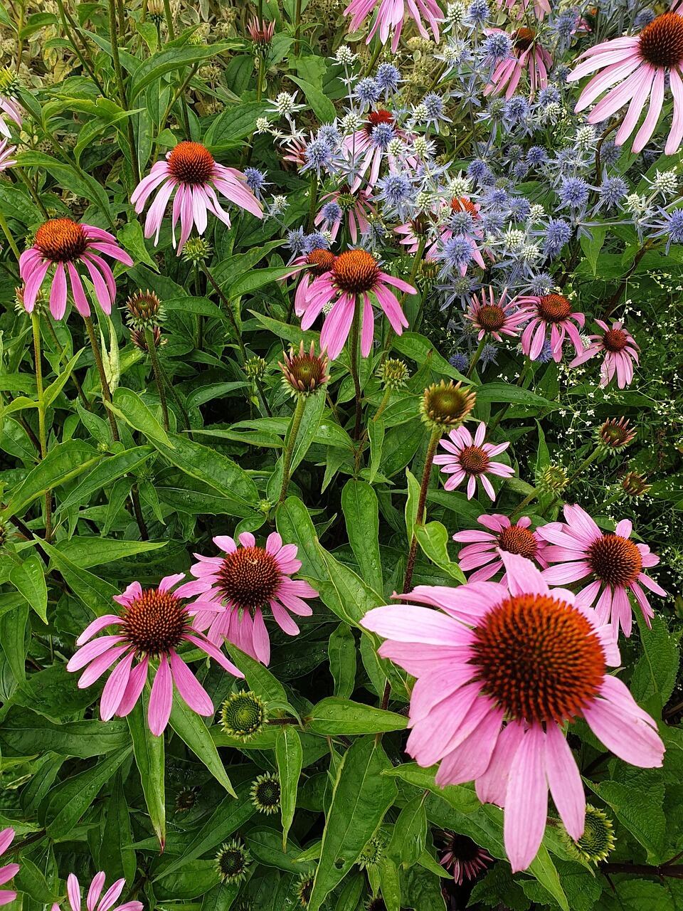 エキナセアは北米原産の多年草で、免疫力向上や感染症予防に効果が期待されるハーブとして、ハーブティーやサプリ、チンキなどで利用可能です。また、丈夫で育てやすく庭やプランターで彩り豊かな花として楽しめます。学名は、Echinacea、和名がムラサキバレンギク、キク科ムラサキバレンギク属の多年草 で、主に薬用として利用されるのは、プルプレア種、アングスティフォリア種、パリダ種の3種で、園芸品種は観賞用が多く薬効は期待できません 。草丈は30〜120cm程度、花色は赤、ピンク、白、黄、緑、オレンジなど多彩で、6月〜10月頃まで開花します 。原産地は北米の草原地帯で、先住民族が薬草として使用していた歴史があります 。近年の研究結果では、免疫力アップや、多糖類、糖タンパク質、フラボノイドなどの成分がマクロファージやリンパ球の働きを促進し、サイトカイン(インターフェロン、インターロイキン)の生成も促します 。抗ウイルス・抗菌作用では、風邪やインフルエンザ、泌尿器感染症、ヘルペスなどに有効で消炎作用では、ウイルスによる炎症を軽減し、皮膚疾患の回復にも寄与します 。副作用・注意点では、キク科アレルギーの人や喘息、自己免疫疾患の人は注意。1歳未満は使用禁忌、子どもは成人量の半分から2/3で使用、妊婦は医師に相談 していきます。エキナセアは、免疫力を高めるためのサポートが期待できるハーブです。穏やかな風味と爽やかな香りが魅力で、日常生活の中で心身の調和を促す役割を果たします。また、飲むことで身体の調子を整え、日々の活力を引き出す手助けをします。